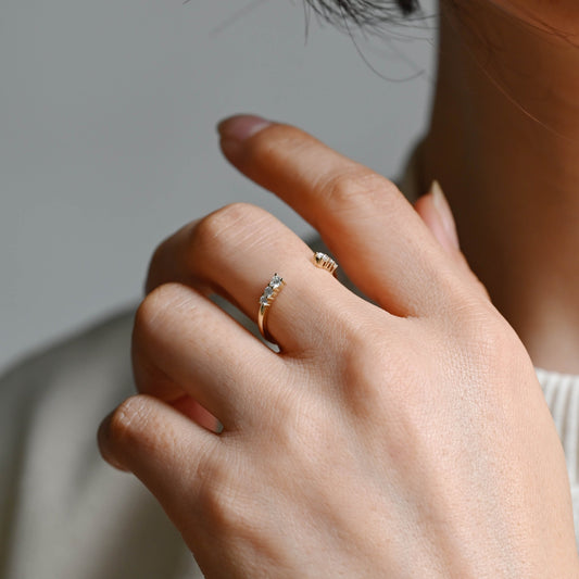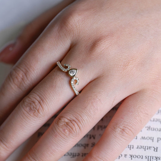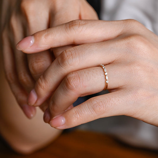 Solid Gold Dainty Pear Cut Curved Moissanite Wedding Band
