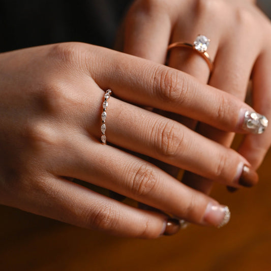 Nature Inspired Leaf Marquise Moissanite Band