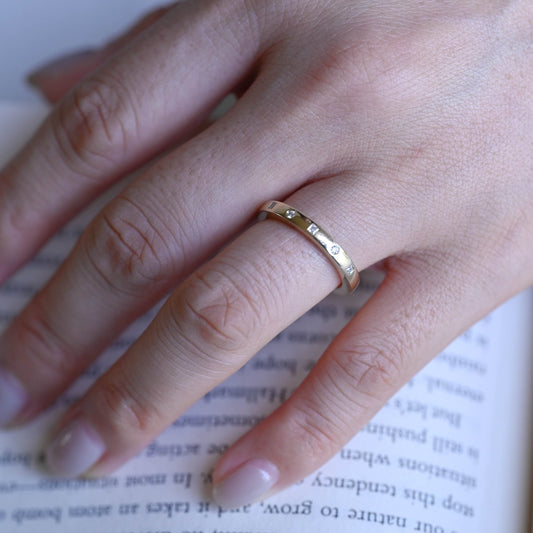 Solid Gold Baguette & Round Moissanite Wedding Band