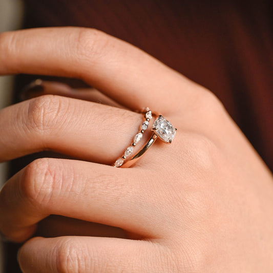 Solid Gold Dainty Cushion Cut Moissanite Wedding Ring SetRegular price From $1,059.00 AUDRegular priceUnit price / per-