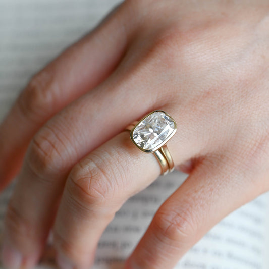 Solid Gold Solitaire Bezel Elongated Cushion Cut Wedding Ring SetRegular price From $1,049.00 AUDRegular priceUnit price / per
