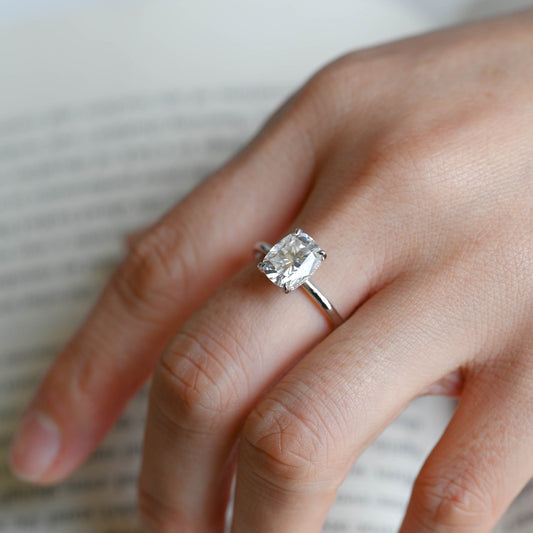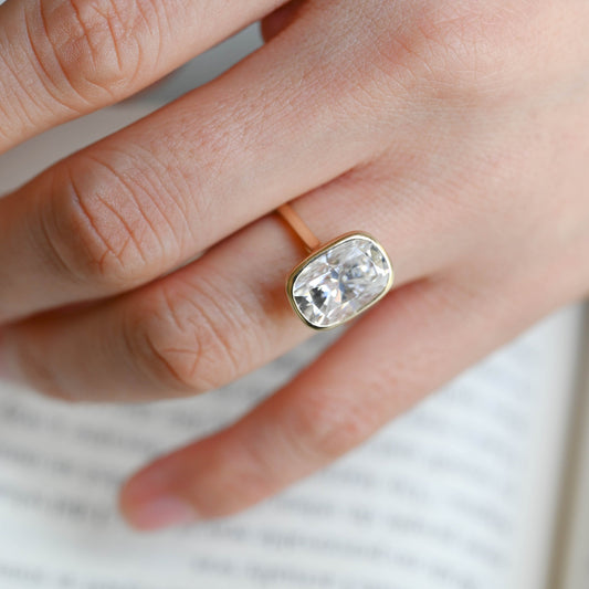 Solid Gold Solitaire Bezel Elongated Cushion Cut Moissanite Engagement Ring