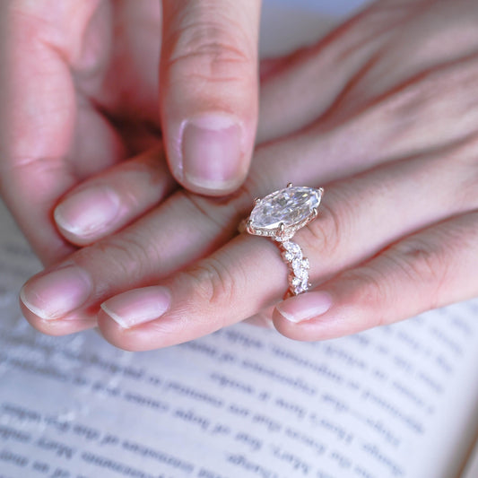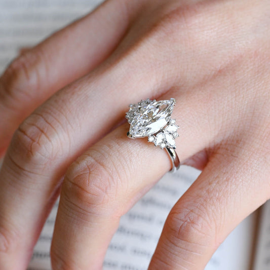Solid Gold Side Cluster Marquise Cut Moissanite Engagement Ring