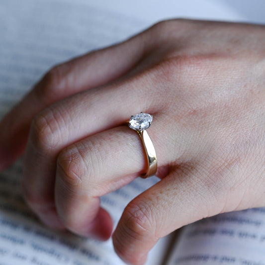 Solid Gold Tulip Basket Two Tone 3mm Oval Cut Moissanite Engagement Ring