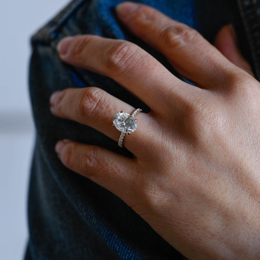Solid Gold Pave Hidden Halo Oval Cut Moissanite Engagement Ring