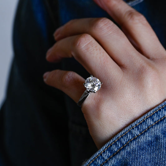 Solid Gold Thick High Set Solitaire Round Cut Moissanite Engagement Ring