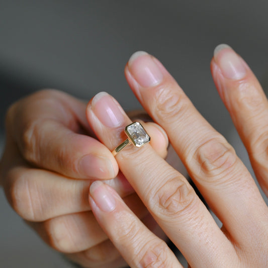 Solid Gold Bezel Emerald Cut Moissanite Engagement Ring