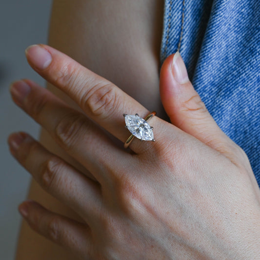 Solid Gold Two Tone Solitaire Tulip Set Marquise Cut Moissanite Engagement Ring
