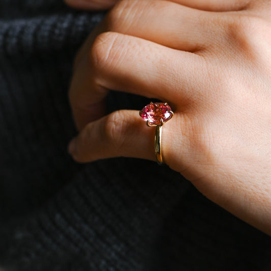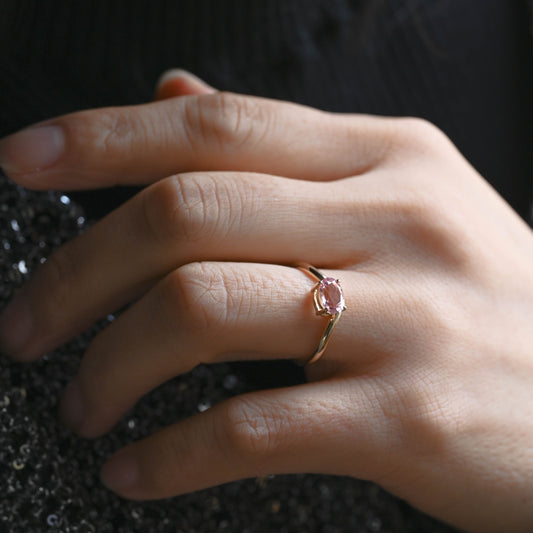 Solid Gold Oval Cut Pink Sapphire Engagement Ring