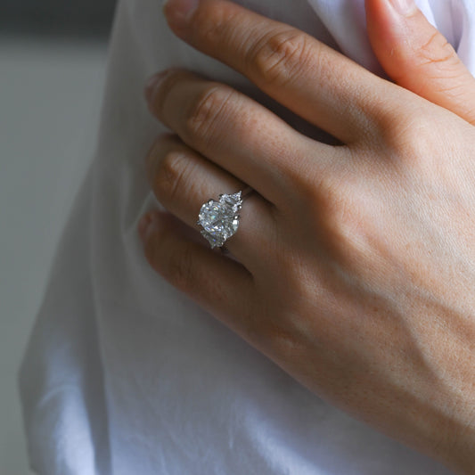 Solid Gold Three Stone Oval Cut Moissanite Engagement Ring