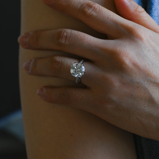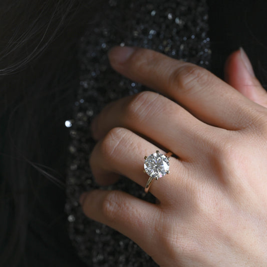 Solid Gold Round Cut Moissanite Engagement Ring