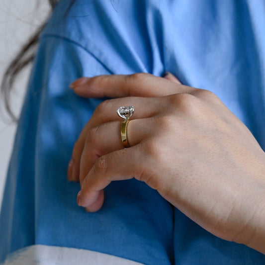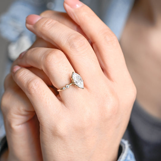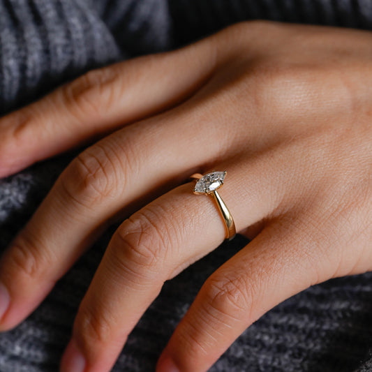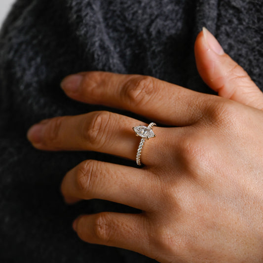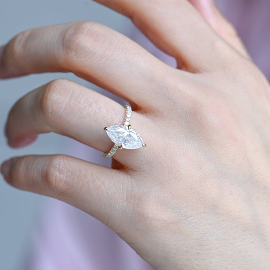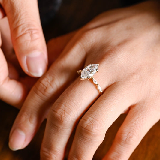 Solid Gold Marquise Cut Moissanite Engagement Ring