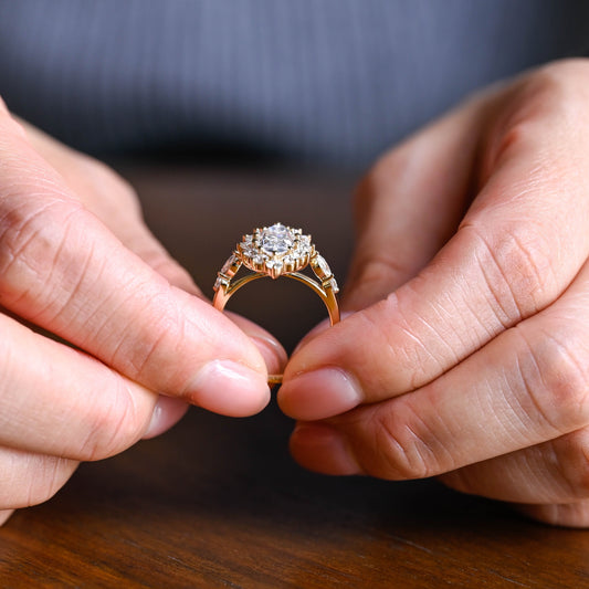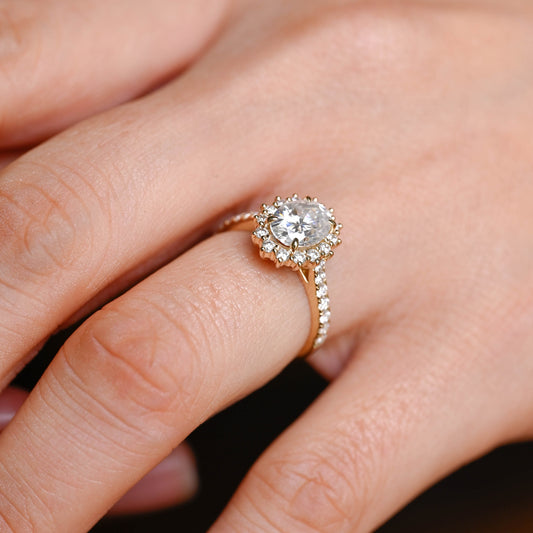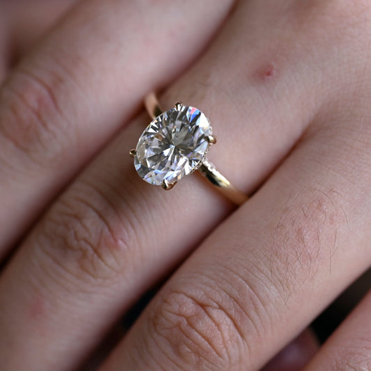 Solid Gold Hidden Halo Oval Cut Moissanite Engagement Ring