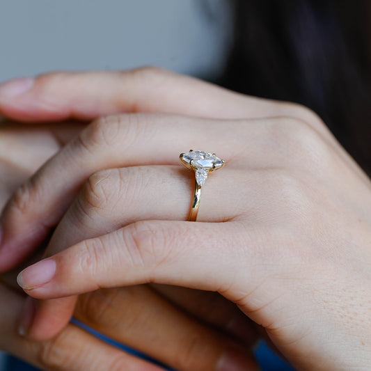 Solid Gold Three Stone Marquise Cut Moissanite Engagement Ring
