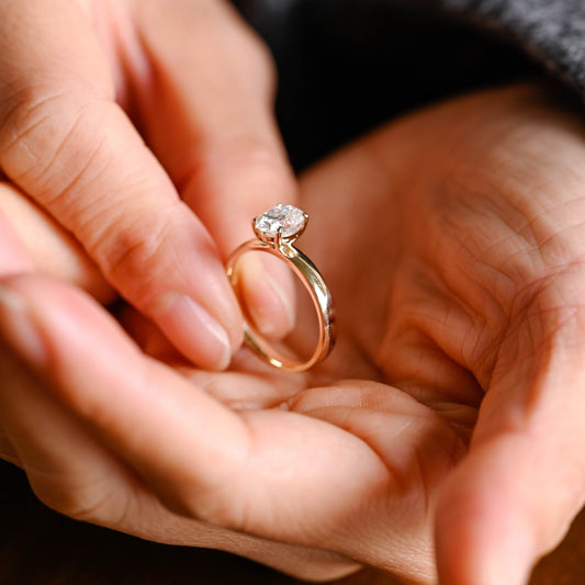 Solid Gold 3mm Solitaire Oval Cut Moissanite Engagement Ring