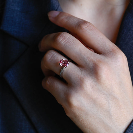 Solid Gold Tulip Set Oval Cut Pink Moissanite Engagement Ring