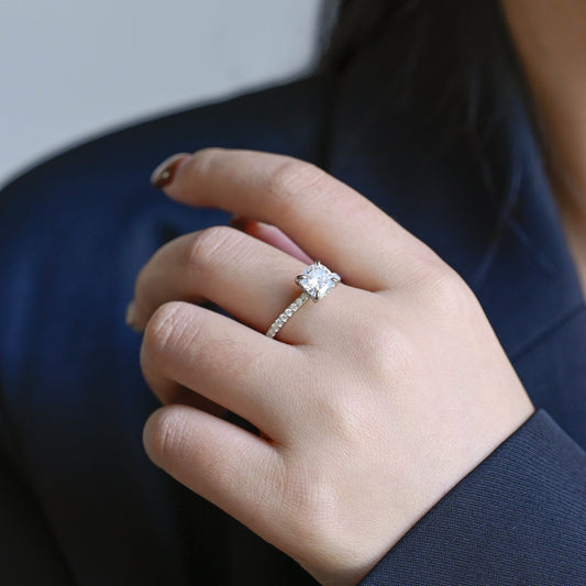 Solid Gold Hidden Halo Cushion Moissanite Engagement Ring