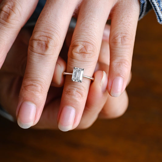 Solid Gold Solitaire Emerald Cut Moissanite Engagement Ring