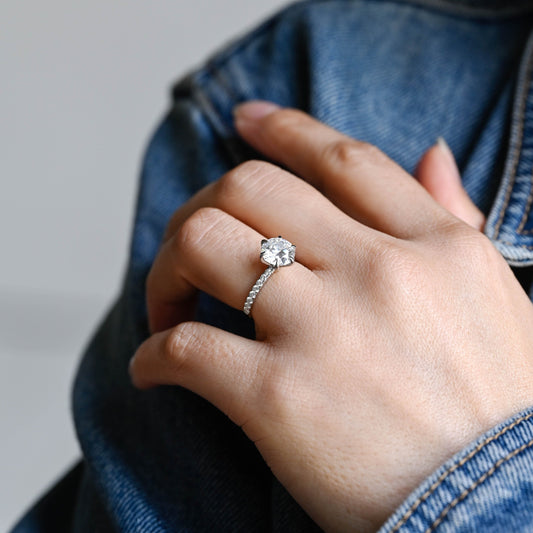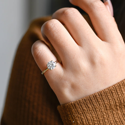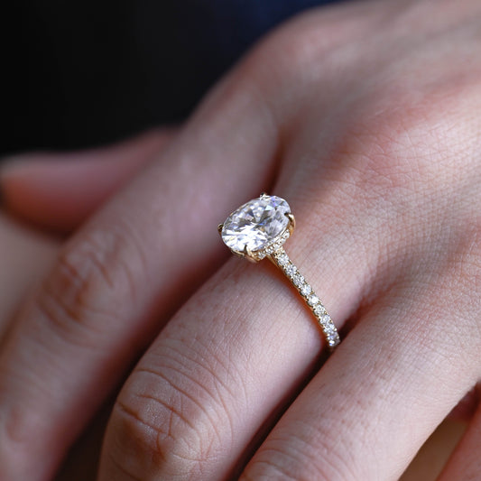 Solid Gold Hidden Halo Oval Moissanite Engagement Ring