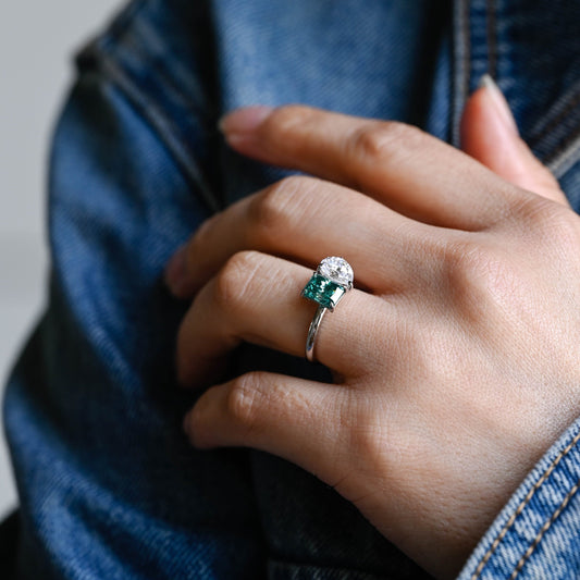 Solid Gold Toi et Moi Emerald & Pear Moissanite Engagement Ring