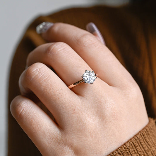 Solid Gold 6 Prongs Round Moissanite Engagement Ring