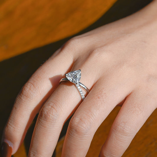 Solid Gold Split Shank Trillion Cut Moissanite Engagement Ring