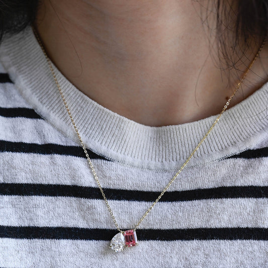 Toi et Moi Pink Emerald Cut & Pear Cut Moissanite Pendant