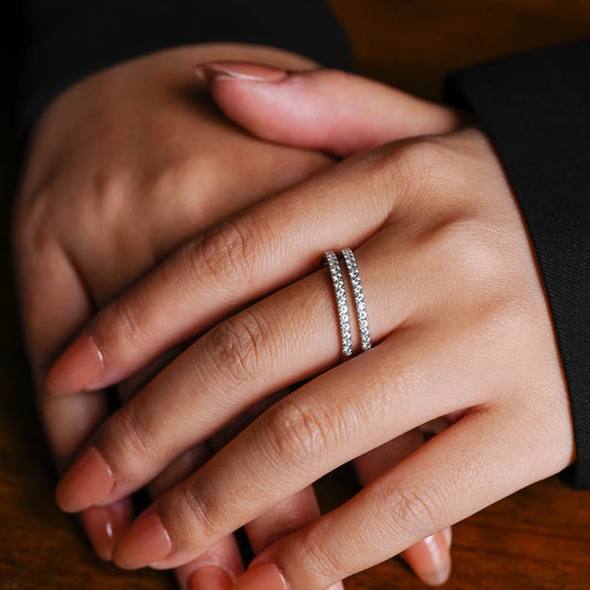 Solid Gold Double Enhancers Half Eternity Moissanite Wedding Band