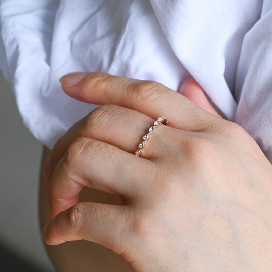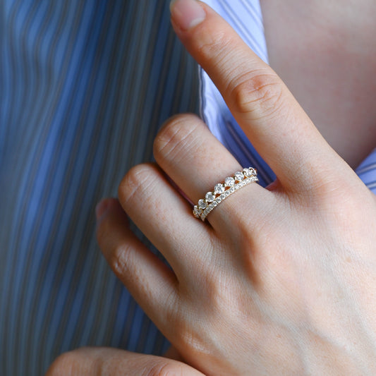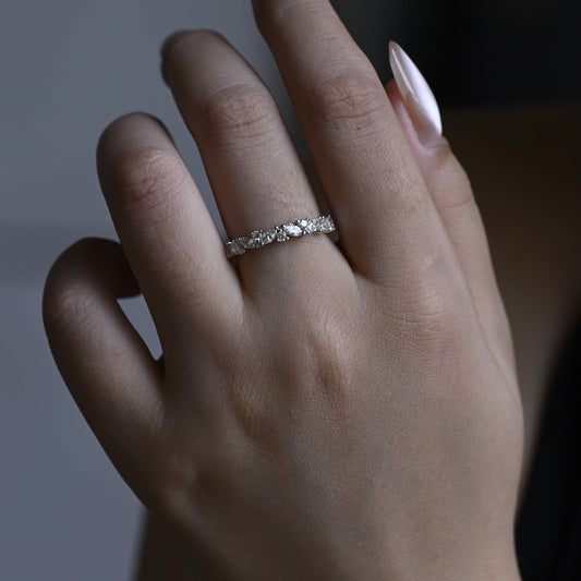 Solid Gold Full Eternity Cluster Marquise & Round Moissanite Wedding Band