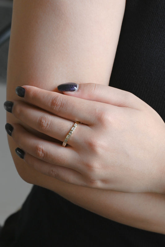 Solid Gold Half Eternity Round Cut Moissanite Wedding Band