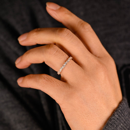 Solid Gold Half Eternity Round & Marquise Cut Moissanite Wedding Band