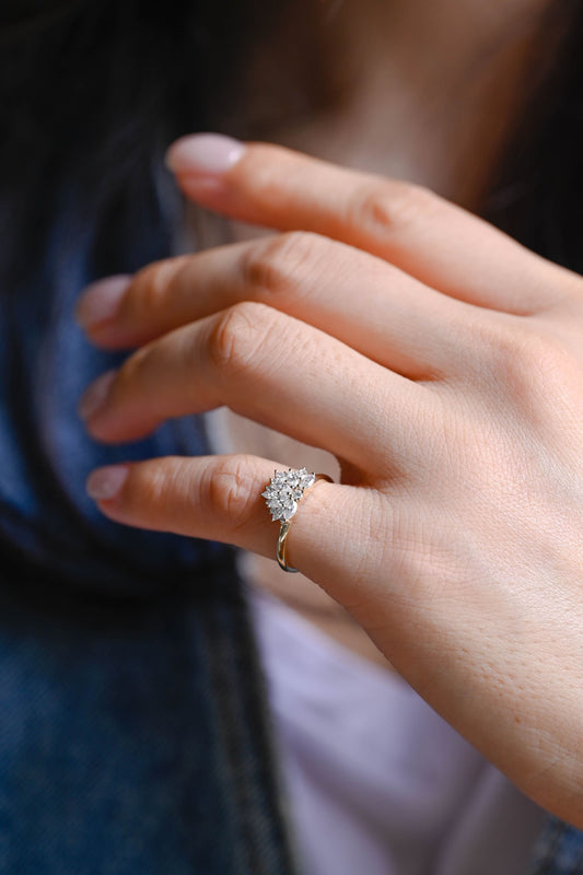 Solid Gold Half Eternity Cluster Marquise & Round Moissanite Wedding Band
